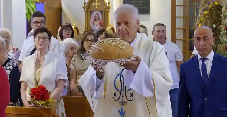 Prosimy Cię, Czcigodny Księże, o odprawienie tej Mszy Świętej dziękczynnej za tegoroczne plony, za każdy kłos i każdy owoc, oraz o pobłogosławienie chleba, aby w naszych domach nigdy go nie zabrakło.