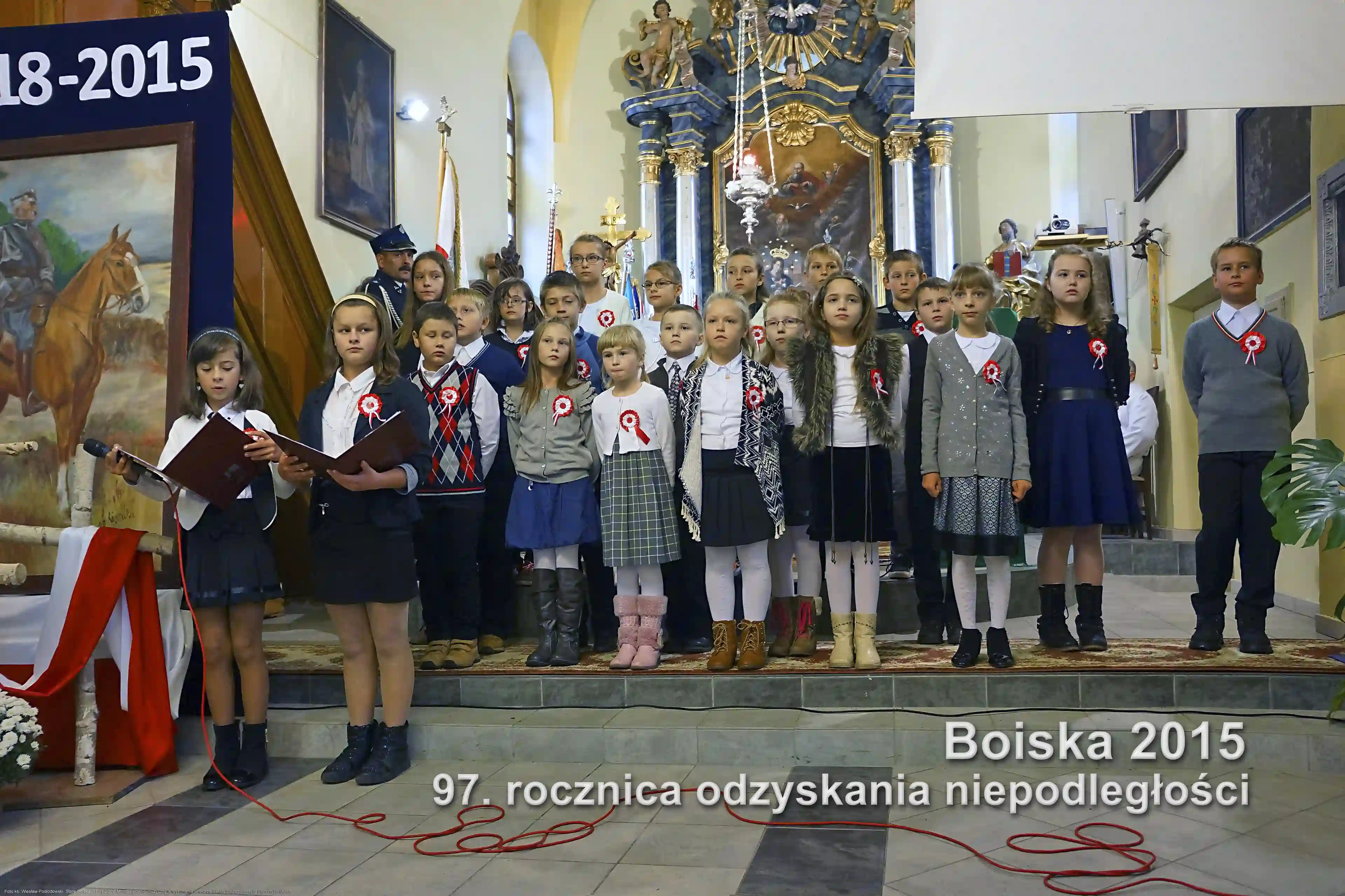 Gminne obchody 97. rocznicy odzyskania niepodległości odbyły się w kościele pw. Zwiastowania Pańskiego w Boiskach. Na początku uroczystości dzieci ze Szkoły Podstawowej w Starych Boiskach przedstawiły program słowno-muzyczny o odzyskaniu niepodległości. Następnie została odprawiona Msza św. za Ojczyznę i złożenie kwiatów pod pomnikiem wdzięczności za odzyskaną wolność.