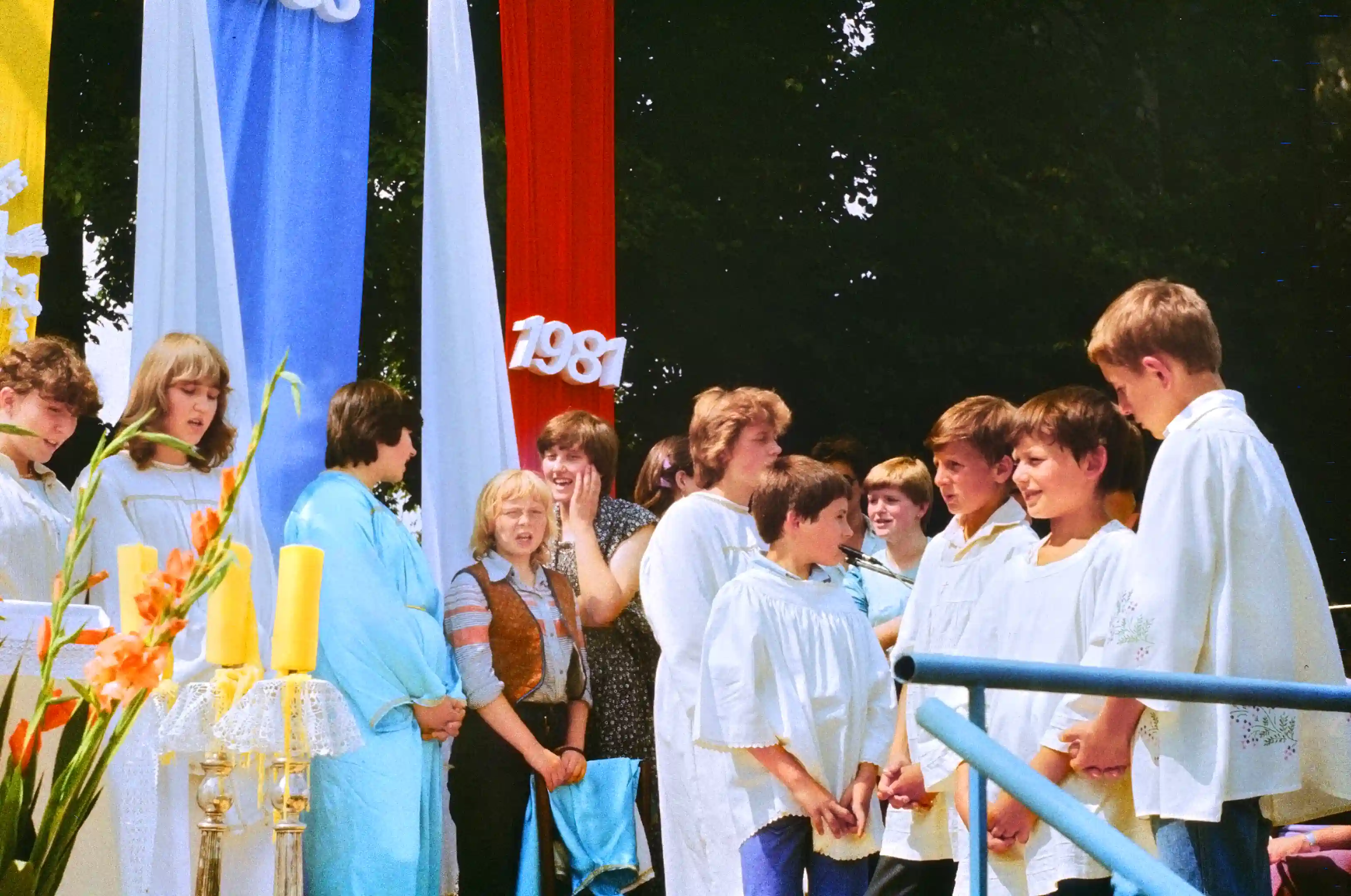 18/36. Kijany, 16-07-1981. Młodzież z Warszawy i ministranci posługujący w liturgii.