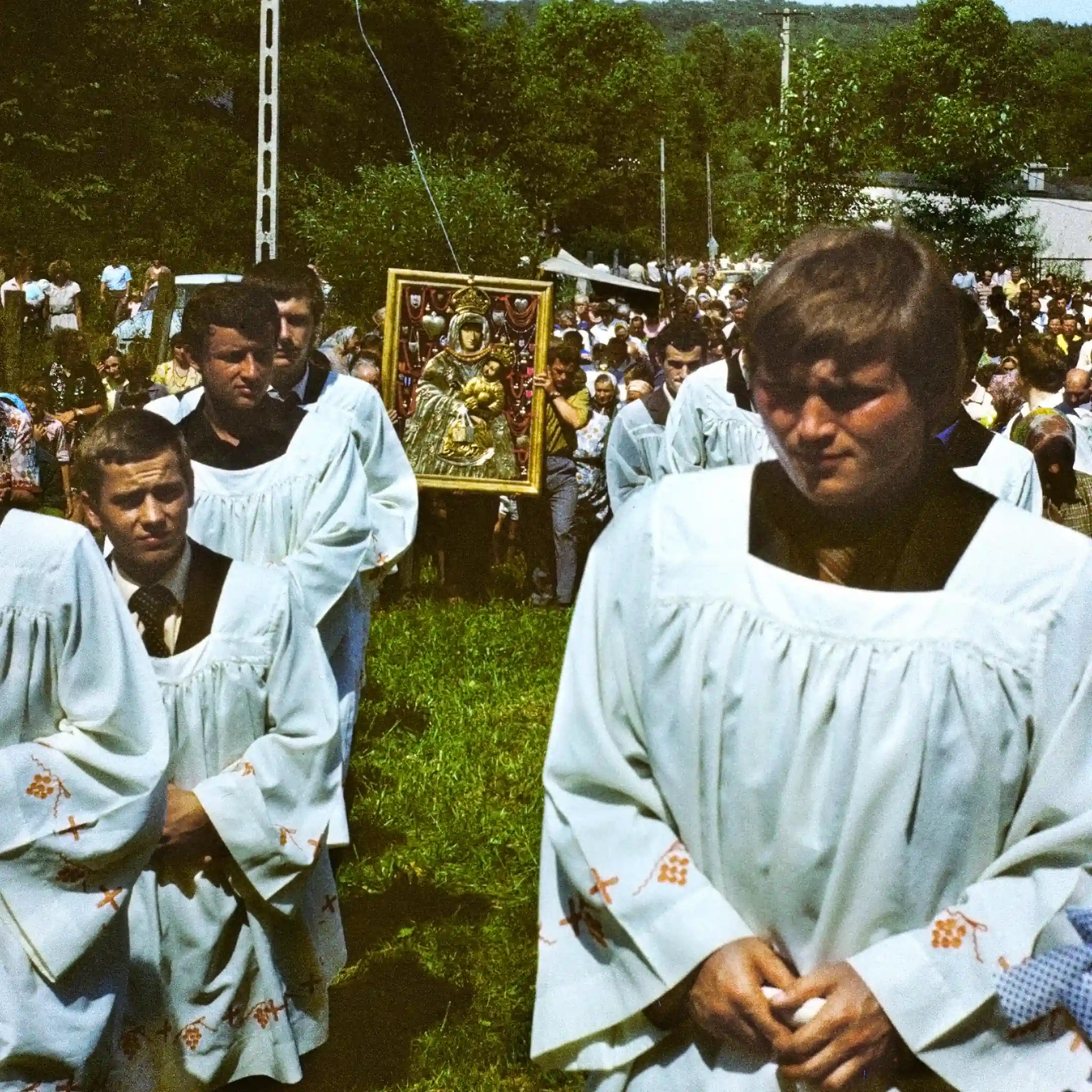 2/36. Kijany, 16-07-1981. Procesja maryjna. Na pierwszym planie – klerycy z Pliszczyna.